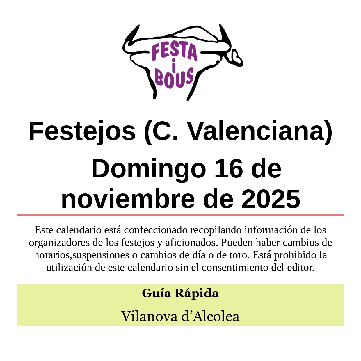Festejos (C.Valenciana) 16 de noviembre de 2025