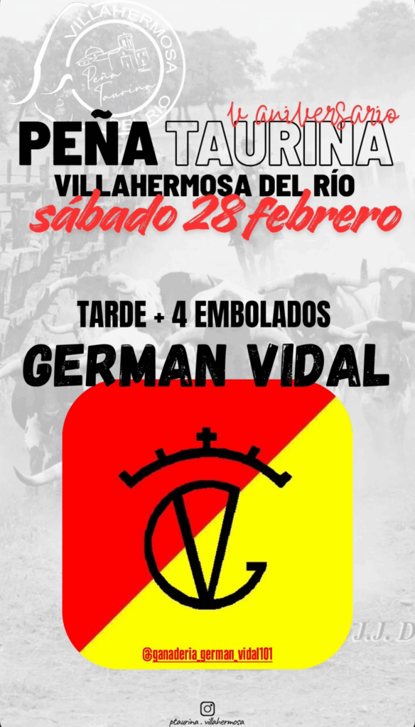 La tarde estará marcada por el ganadero castellonense Germán Vidal de Cabanes, donde exhibirá vacas y se realizarán cuatro emboladas. Sin duda será un gran día taurino para celebrar un aniversario especial como son los cinco primeros años de vida de una peña.