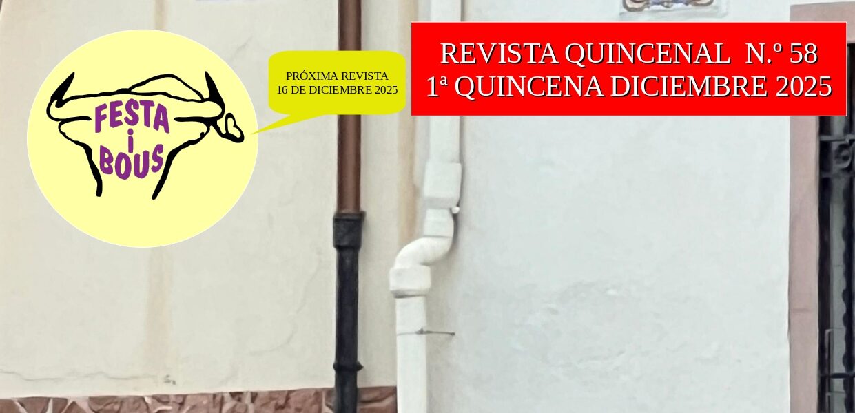 Ya tenéis disponible el número 58 de la revista Festa i Bous. En ella además de encontrar las noticias y reportajes más destacados del sector podréis encontrar un amplio y completo calendario de la primera quincena del mes de diciembre de la comunidad valenciana.