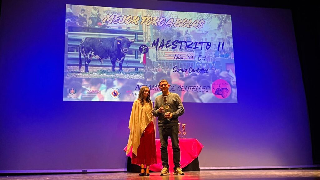 – Mejor toro a bolas para Maestrito II Núm 41 y G 1 de la ganadería de Sergio Centelles patrocinado por la A.C.T. Amics de Centelles