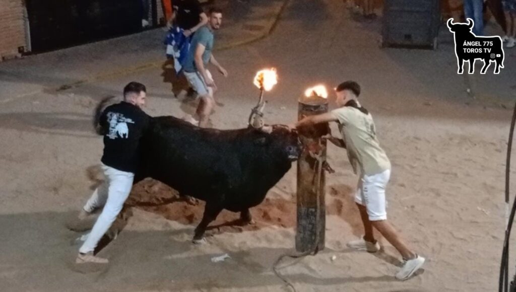 Por la noche, después de la tradicional balonada se embolaron desde la plaza tres astados, que nos dejaron buenos detalles. Ya que el toro de Arauz de Robles no pudo ser embolado por la lesión anteriormente mencionada. En primer lugar se emboló el de la Ganadería La Quinta, cortó cuerda Adrián Gimeno. El segundo fue el de Cebada Gago y cortó cuerda Cristián Abad. Cerraba la noche el de Arcadio Albarrán y cortó cuerda David Cerdá. Las reses fueron emboladas por las cuadrillas, Els que Som, El Morrero, El Poll y El Raval.