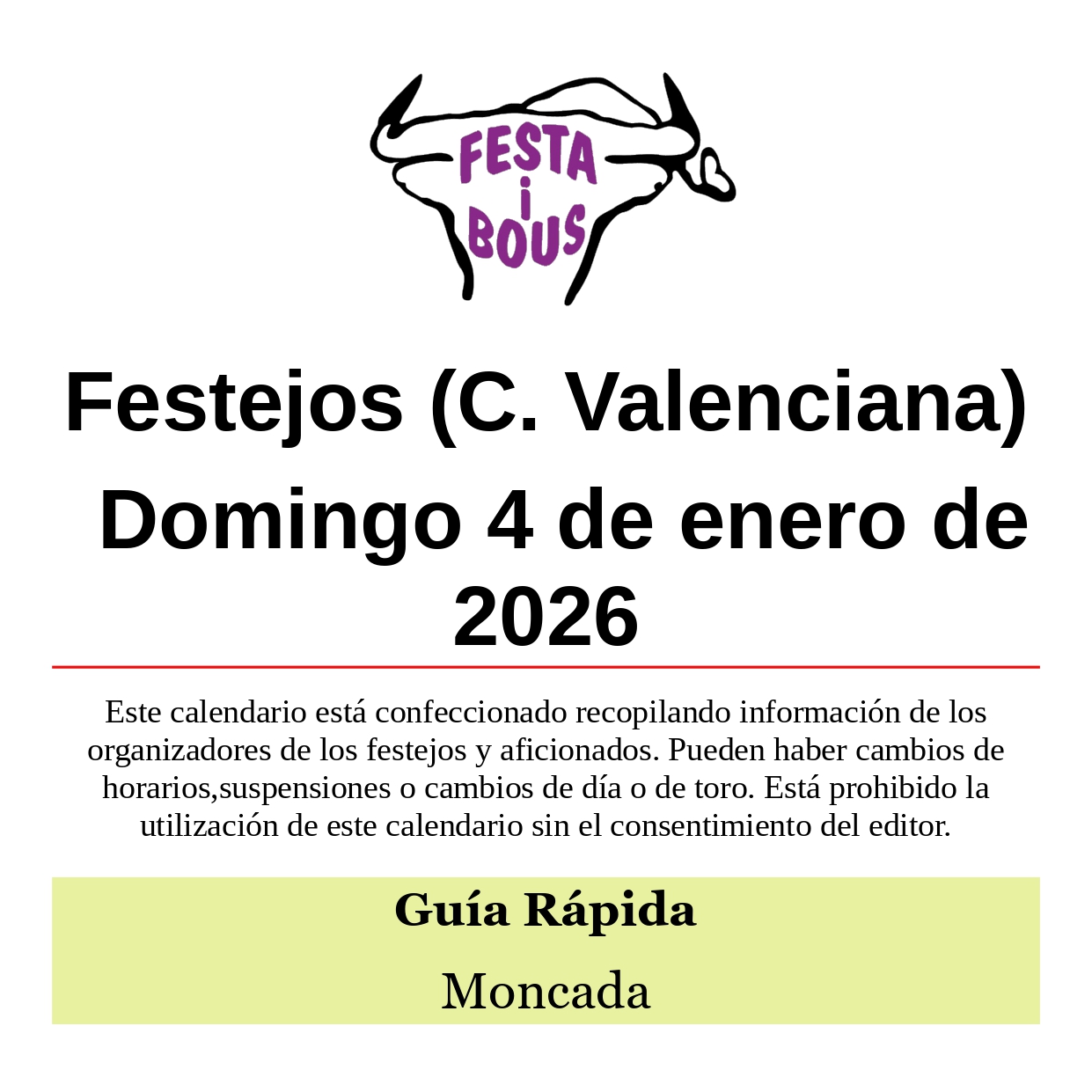 Festejos (C. Valenciana) Domingo 4 de enero de 2026