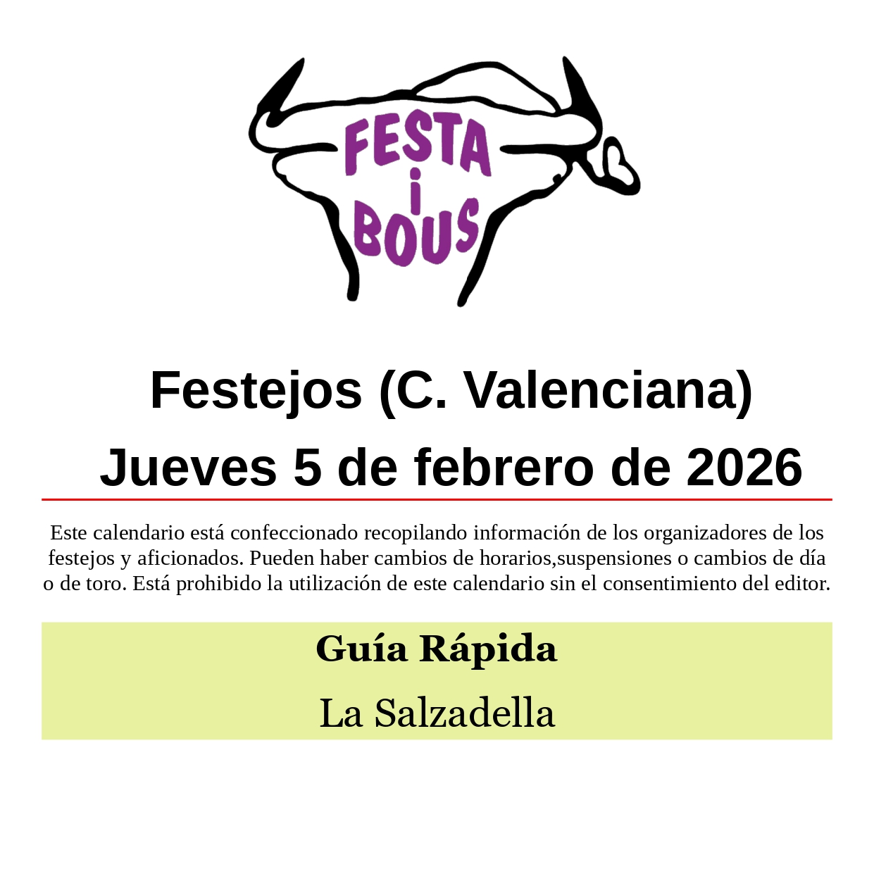 Festejos (C. Valenciana) Jueves 5 de febrero de 2026
