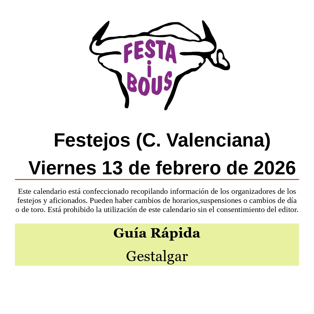 Festejos (C. Valenciana) Viernes 13 de febrero de 2026