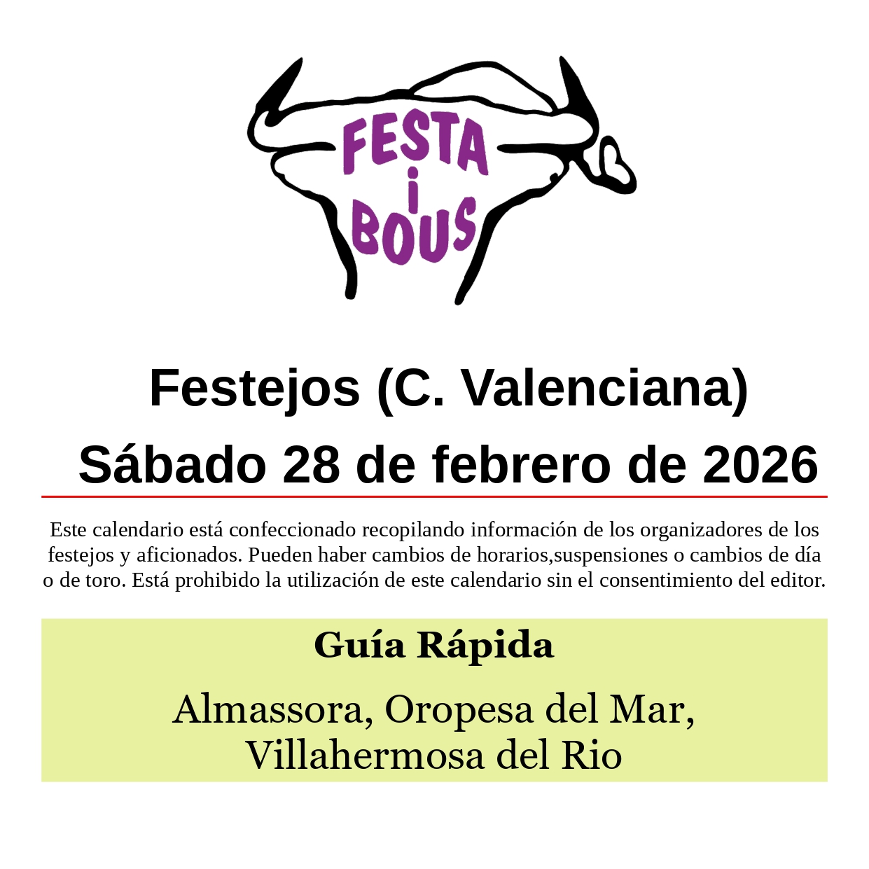 Festejos (C. Valenciana) Sábado 28 de febrero de 2026