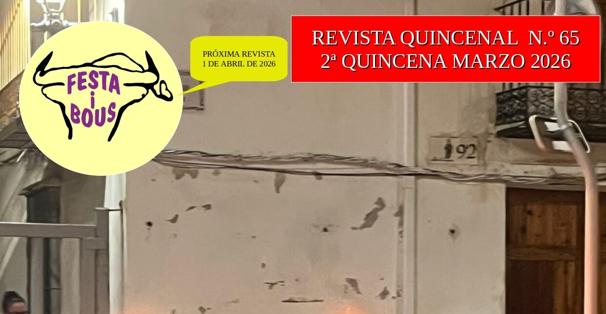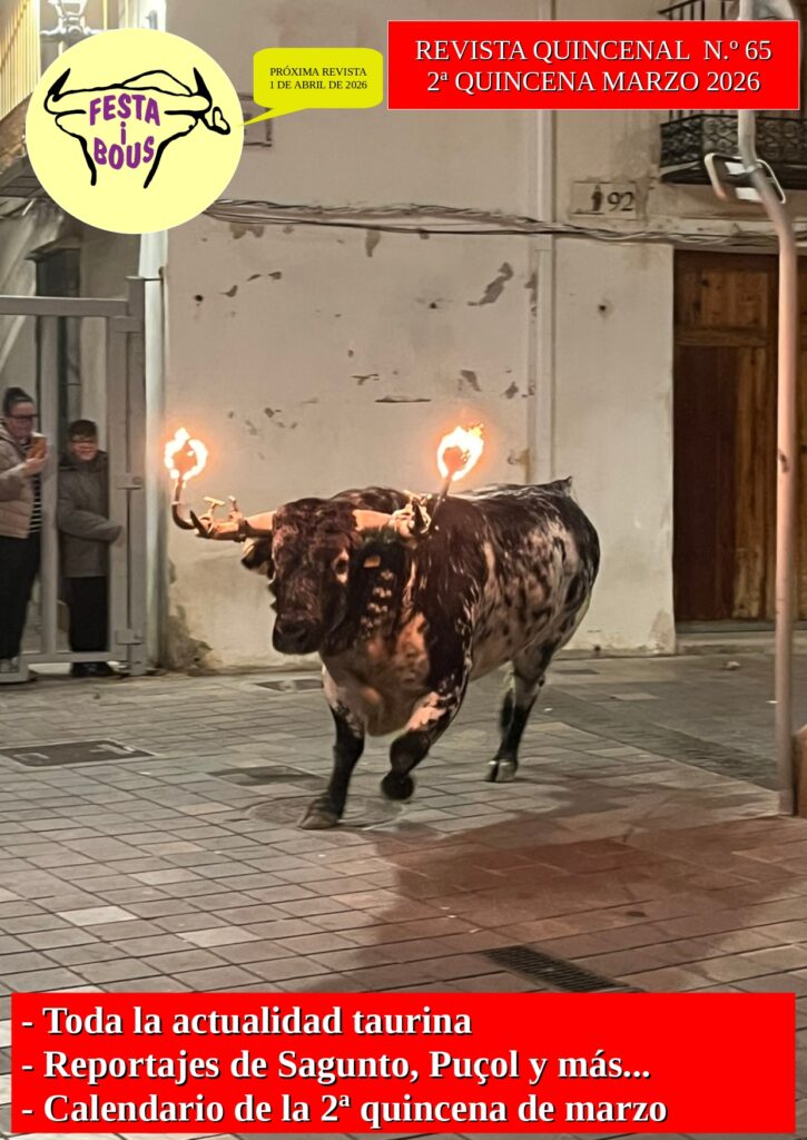 Ya tenéis disponible el número 65 de la revista Festa i Bous. En ella además de encontrar las noticias y reportajes más destacados del sector podréis encontrar un amplio y completo calendario de la segunda quincena del mes de marzo de la comunidad valenciana.