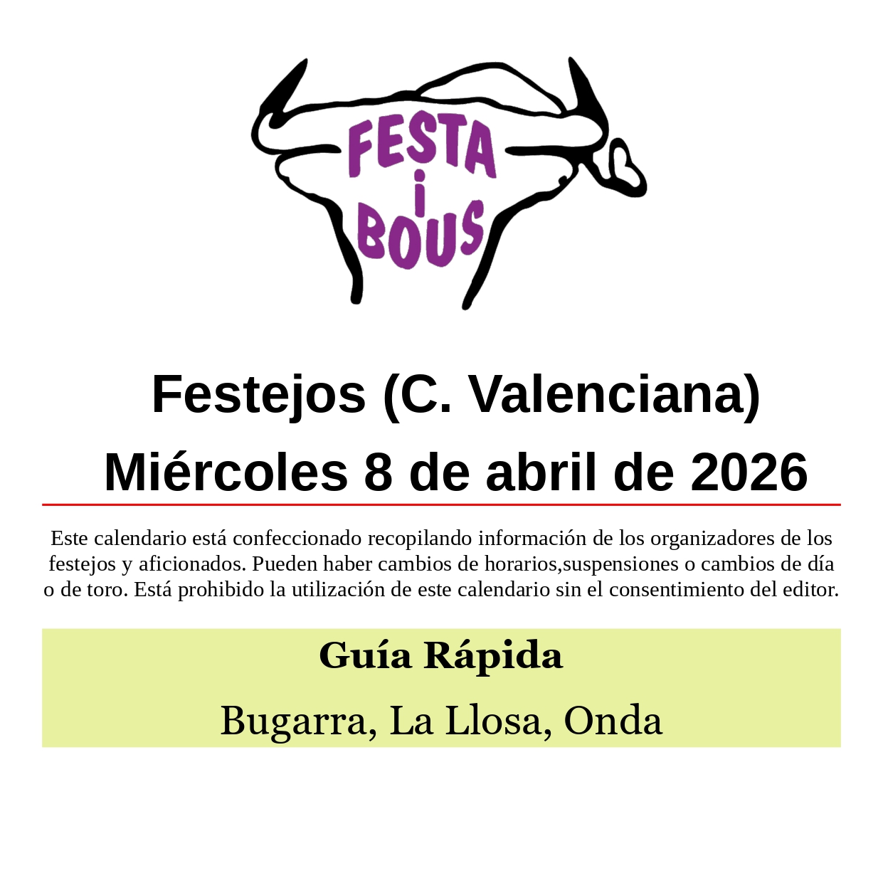 Festejos (C. Valenciana) Miércoles 8 de abril de 2026